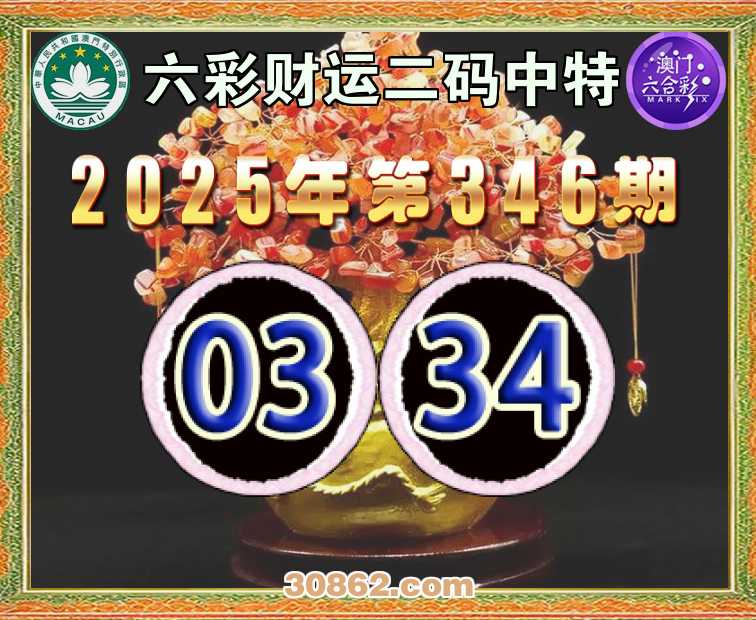 346期:〖六彩财运〗 二码中特03.34】开:03