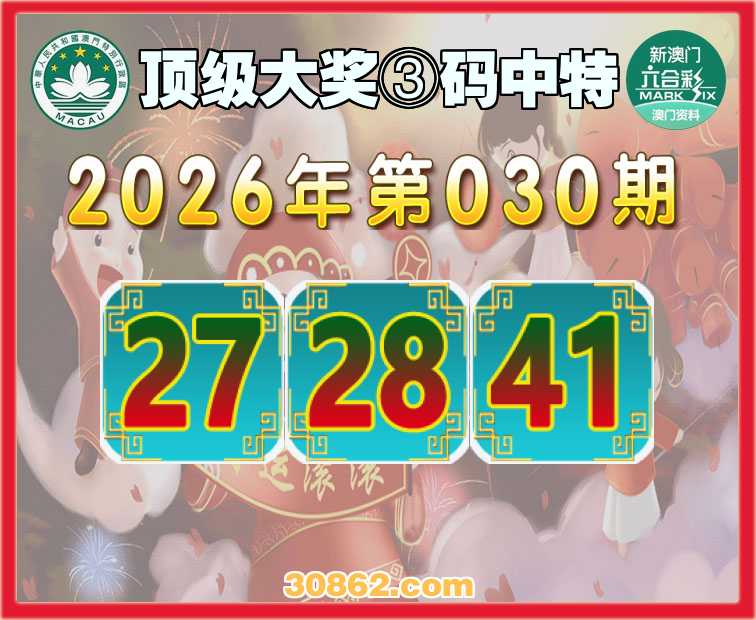 030期:『顶级大奖』 ③码中特【27.28.41】开:41