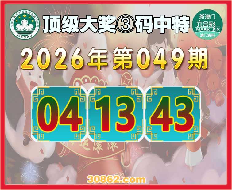 049期:『顶级大奖』 ③码中特【04.13.43】开:13