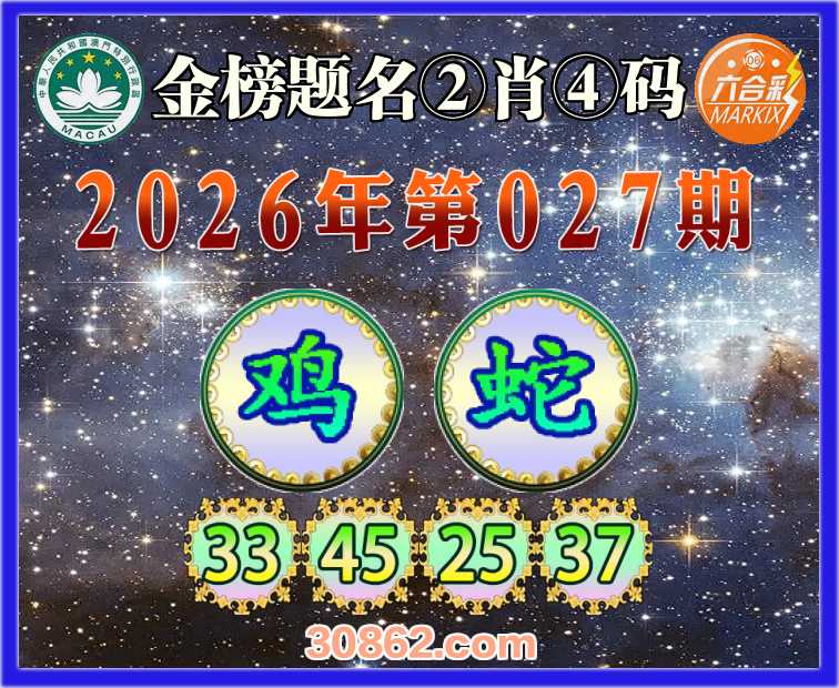 027期: 金榜题名 ②肖④码蛇】【33.45.25.37】开:鸡45