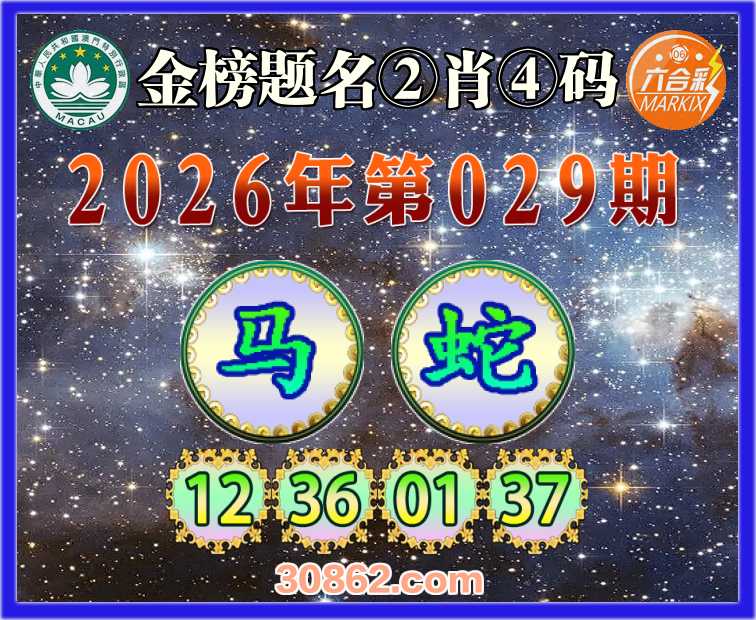 029期: 金榜题名 ②肖④码【马】【12.36.01.37】开:蛇01