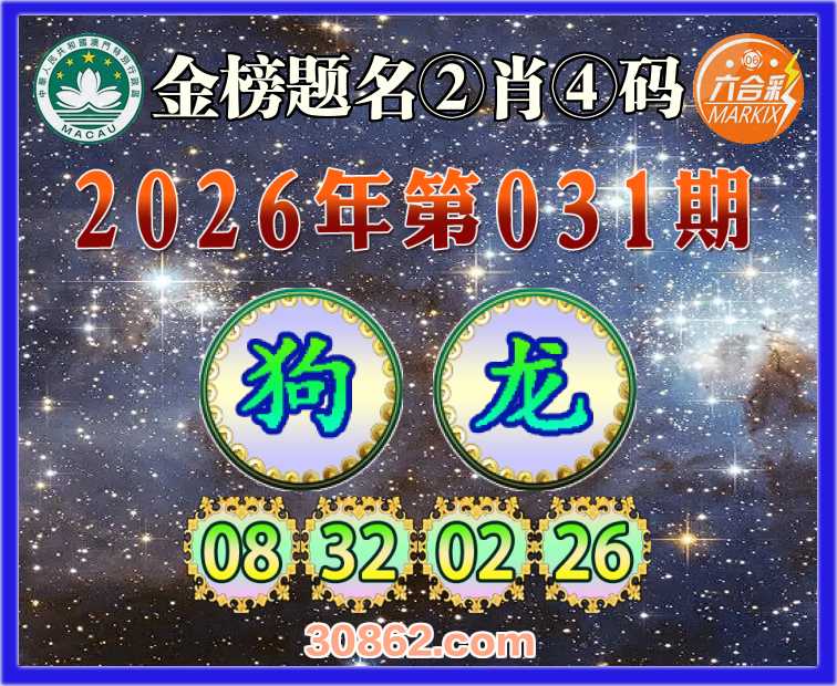 031期: 金榜题名 ②肖④码【狗】【08.32.02.26】开:龙26