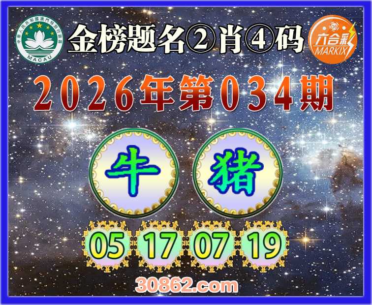 034期: 金榜题名 ②肖④码【牛】【05.17.07.19】开:猪19