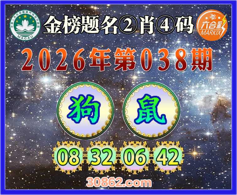 038期: 金榜题名 ②肖④码【狗】【08.32.06.42】开:鼠42