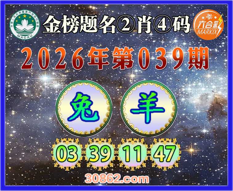 039期: 金榜题名 ②肖④码【兔】【03.39.11.47】开:羊11