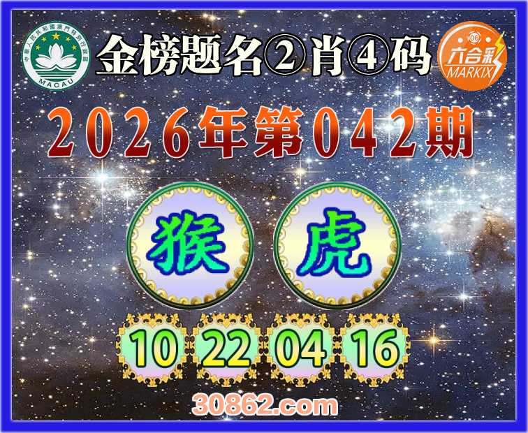 042期: 金榜题名 ②肖④码【猴】【10.22.04.16】开:虎16