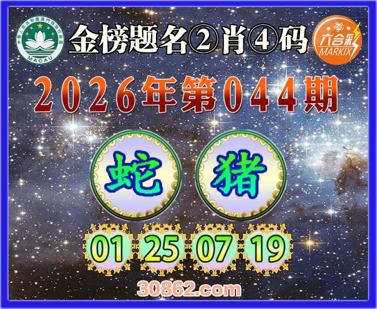 044期: 金榜题名 ②肖④码【蛇】【01.25.07.19】开:猪19
