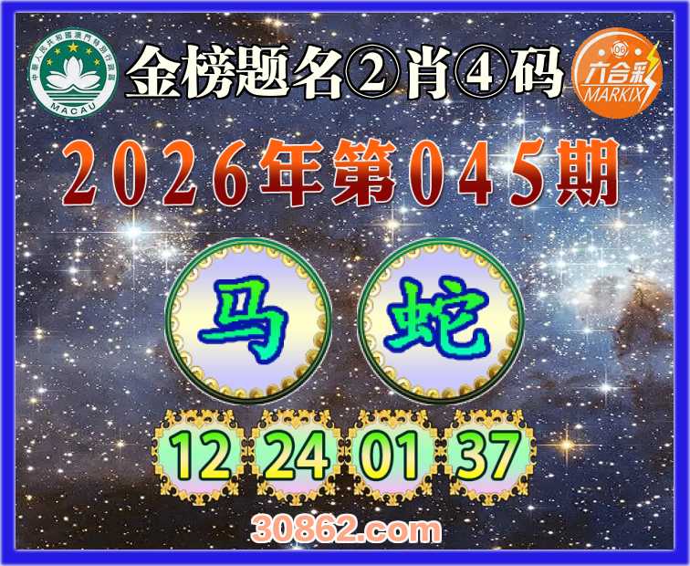 045期: 金榜题名 ②肖④码【马】【12.24.01.37】开:蛇01