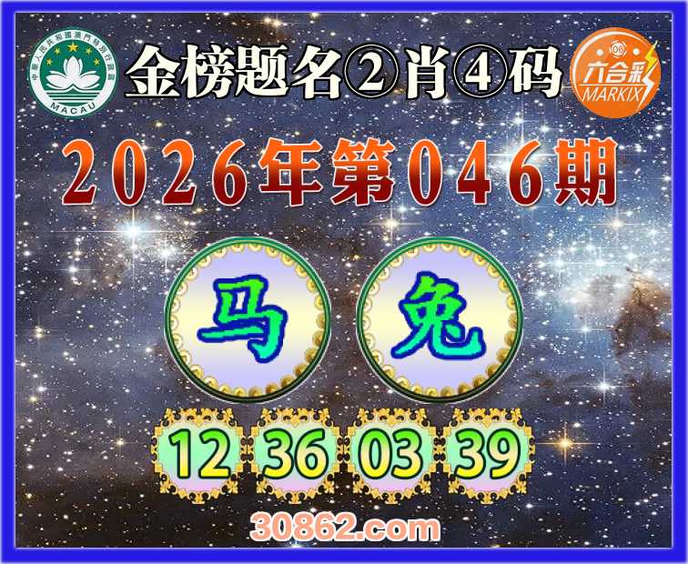 046期: 金榜题名 ②肖④码【马】【12.36.03.39】开:兔03